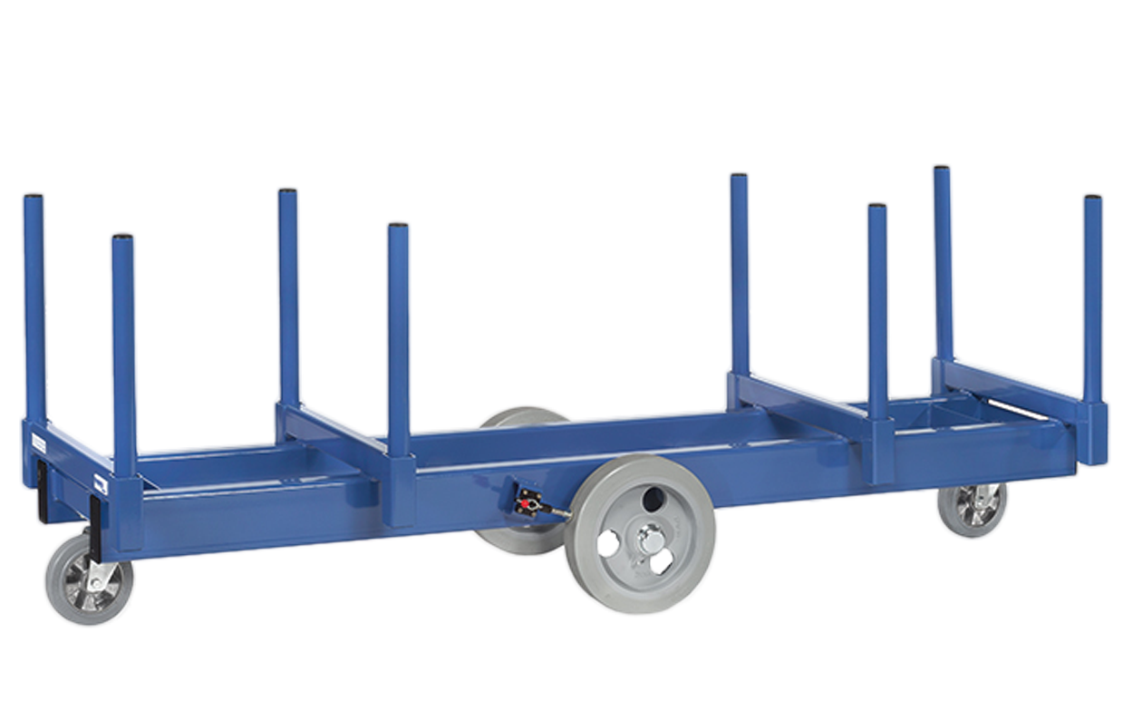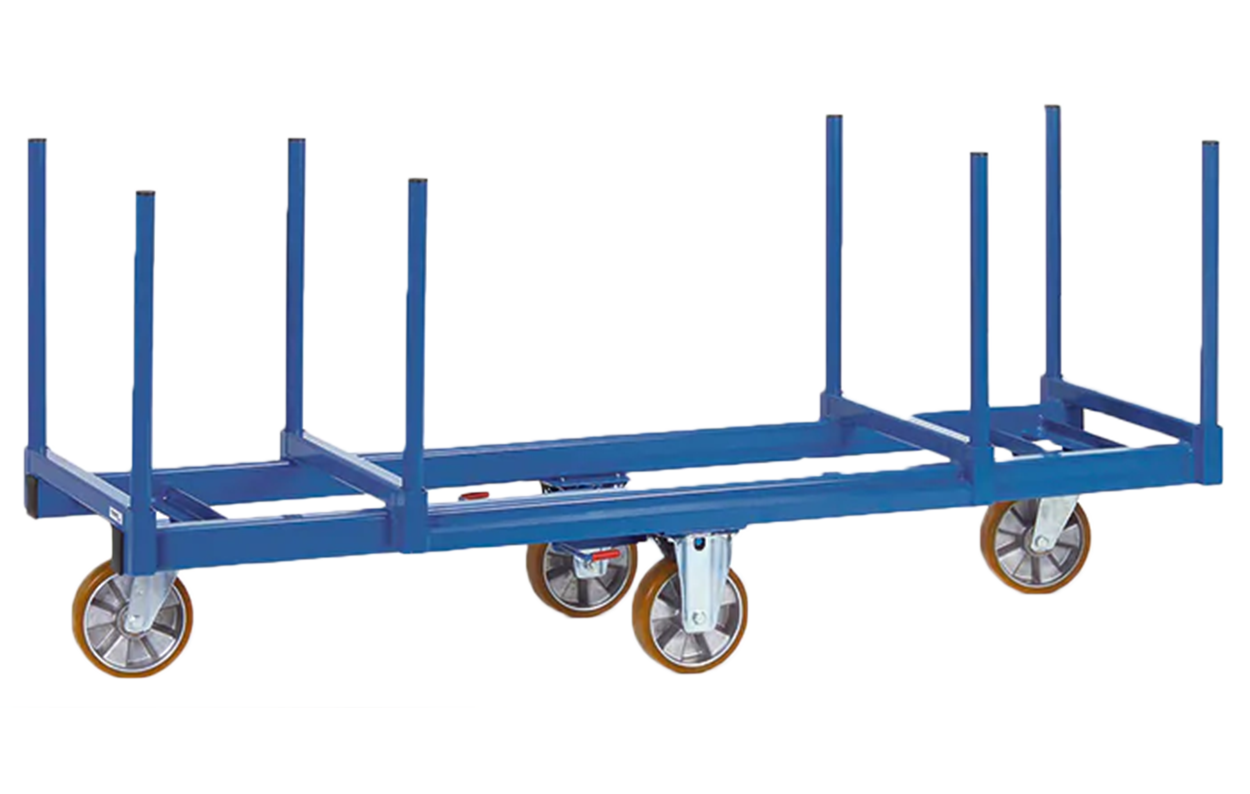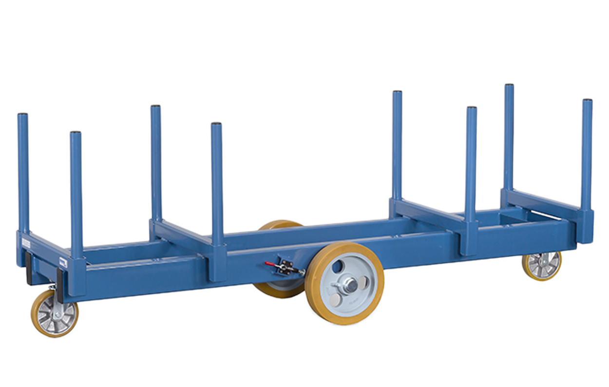 Dankzij de ruitvormige wielopstelling kunnen de langmateriaalwagens ter plaatse worden gedraaid, wat zorgt voor een grote wendbaarheid. De non-marking banden zorgen ervoor dat ze ook op gevoelige vloeren kunnen worden gebruikt zonder sporen achter te laten. De wagens kunnen gemakkelijk worden geladen en gelost met een kraan of vorkheftruck.