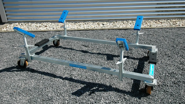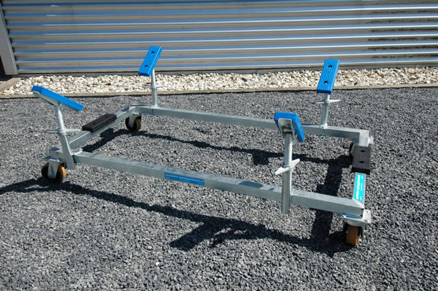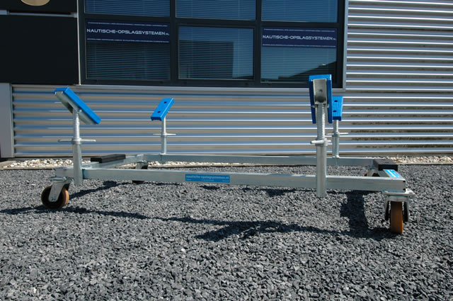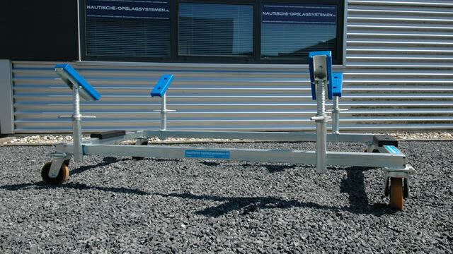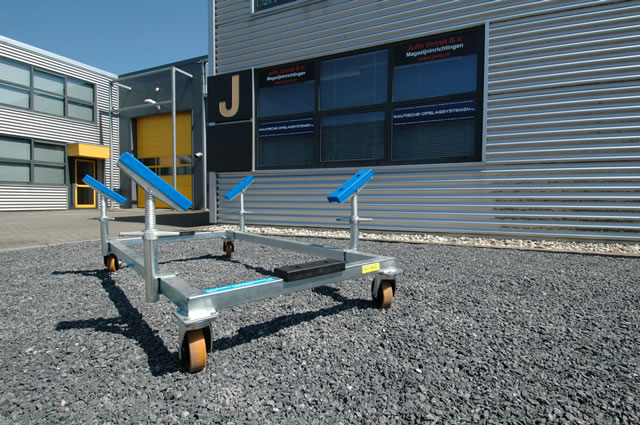 Onze verrijdbare bootbokken zijn thermisch verzinkt en voorzien van NON-marking ondersteuningen. Door de vele traploze verstelmogelijkheden zijn de bootbokken zeer eenvoudig in gebruik. Wij gebruiken bij de opbouw van al onze standaard verrijdbare bootbokken dezelfde kokers. Het frame van een 900 kg uitvoering is dus gelijk aan een 2.850 kg uitvoering. De kwaliteitswielen bepalen het uiteindelijke draagvermogen van de verrijdbare bok. Bij de berekening van het draagvermogen gaan wij uit van 3 wielen i.p.v. 4.